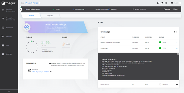 With Torque, DevOps architects create blueprints that integrate Helm Charts. Blueprints are made available on-demand through Torque’s intuitive user interface and integrations with CI/CD and ITSM platforms, so teams can deploy environments containing Charts on demand. This allows all your teams (e.g. development, testers, presales, product etc.) to re-use and scale Charts across all environments where they will be useful, regardless of whether they are experienced Helm users.